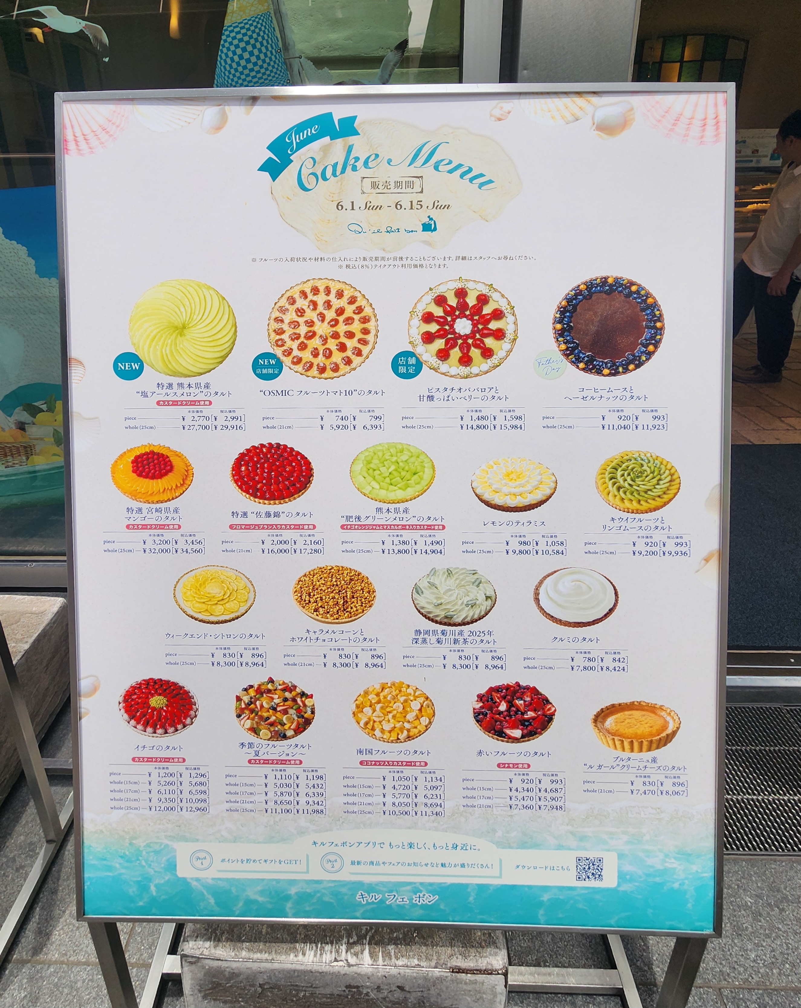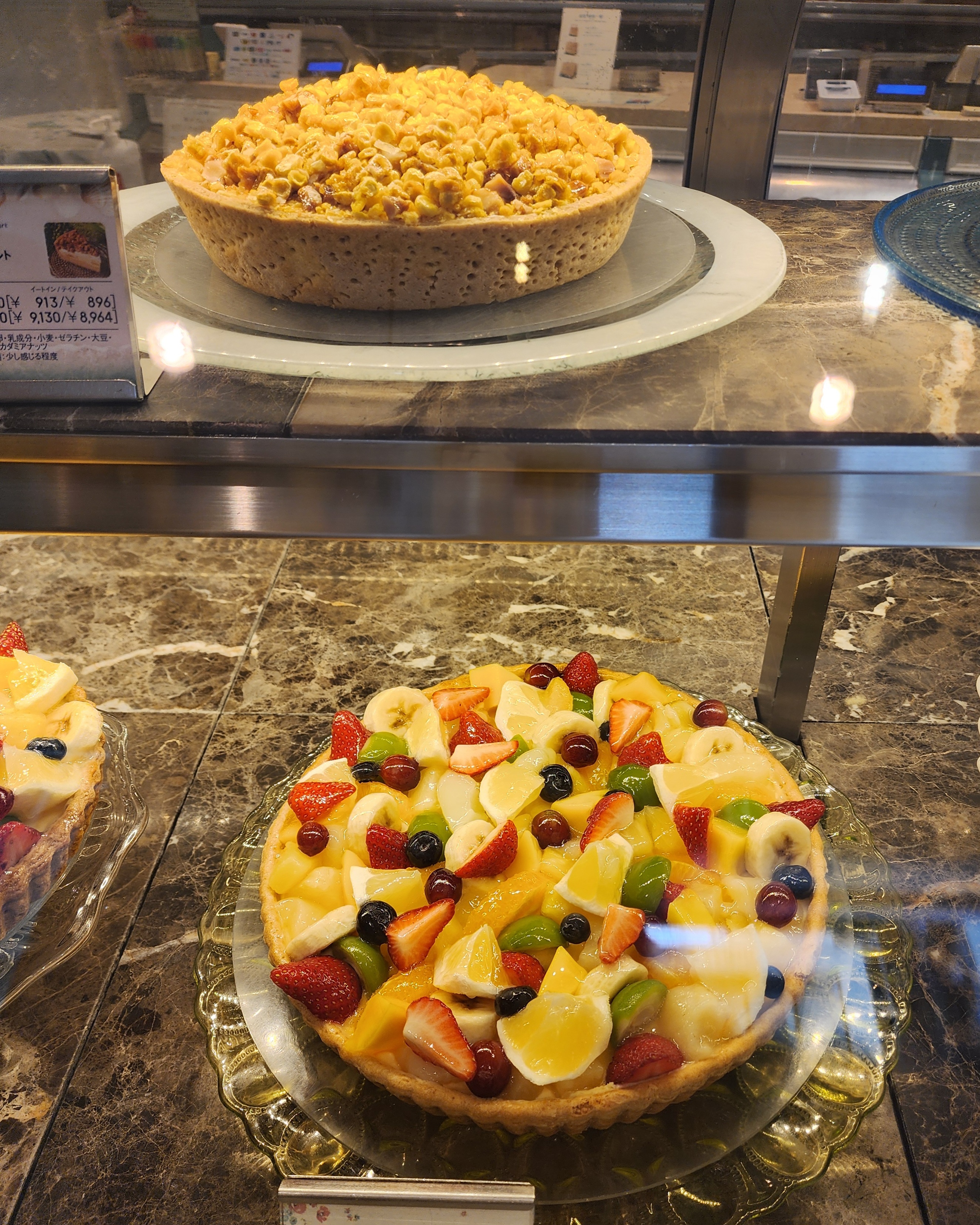 가장 인기 있는 메뉴는 계절 과일이 듬뿍 올라간 믹스후르츠 타르트입니다. 가격은 한 조각에 약 1,200~1,500엔 정도로 일반 타르트보다 높은 편이지만, 사용하는 과일의 품질과 비주얼, 맛을 고려하면 납득이 갑니다.