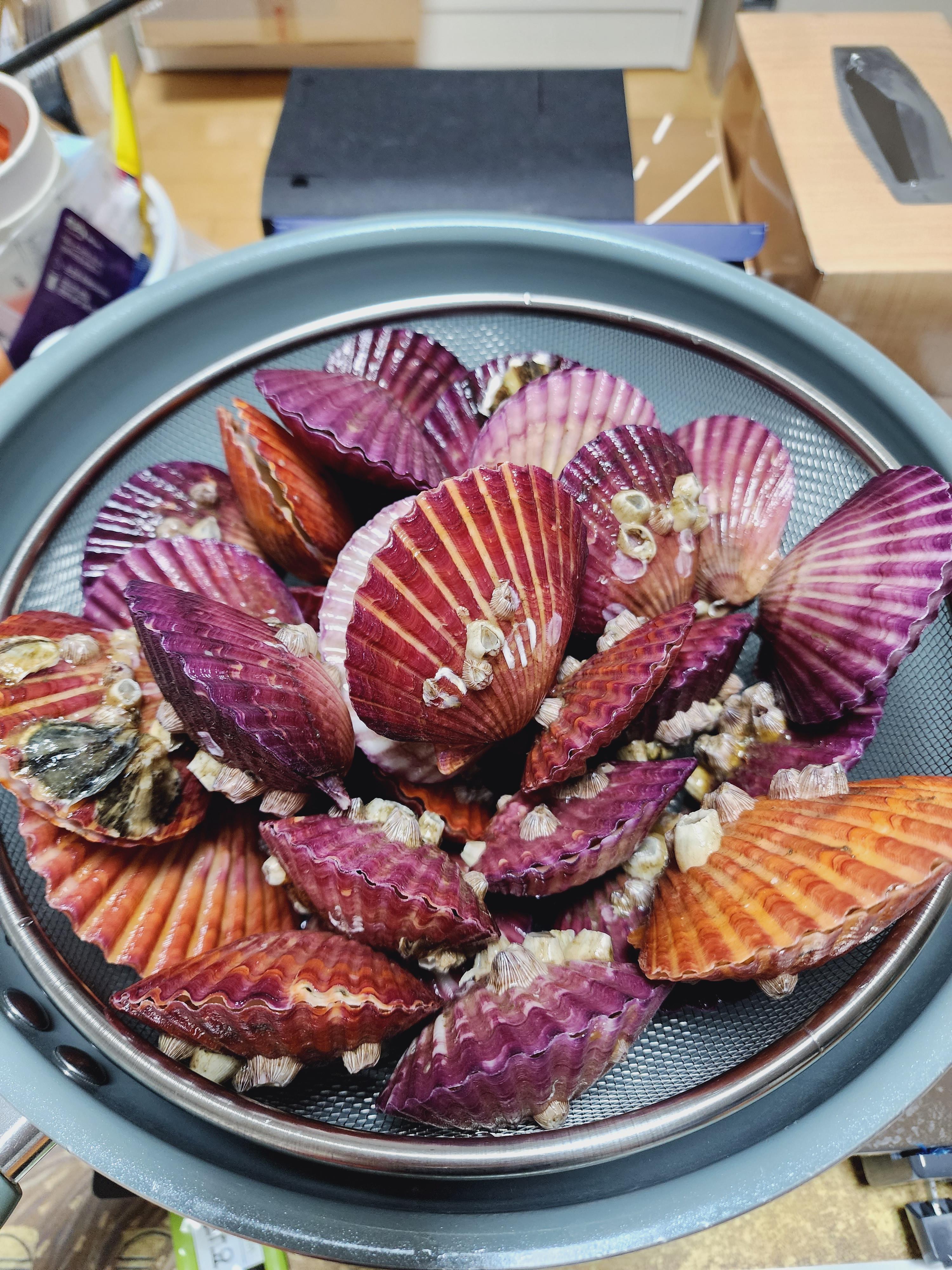 가리비 해감법은 다음과 같습니다. 물에다가 적정량의 소금을 넣어 쇠수저나 젓가락 넣어서 어둡게 한 뒤 1~2시간 정도 기다리면 가리비가 불순물을 뱉어내게 됩니다. 요새는 세척된 가리비가 잘 나와서 솔로 박박 문지르는 수고스러운 일 없이 몇 시간만 해감 후 몇 번만 헹궈내 둬 깔끔하게 바로 요리를 할 수 있었습니다.