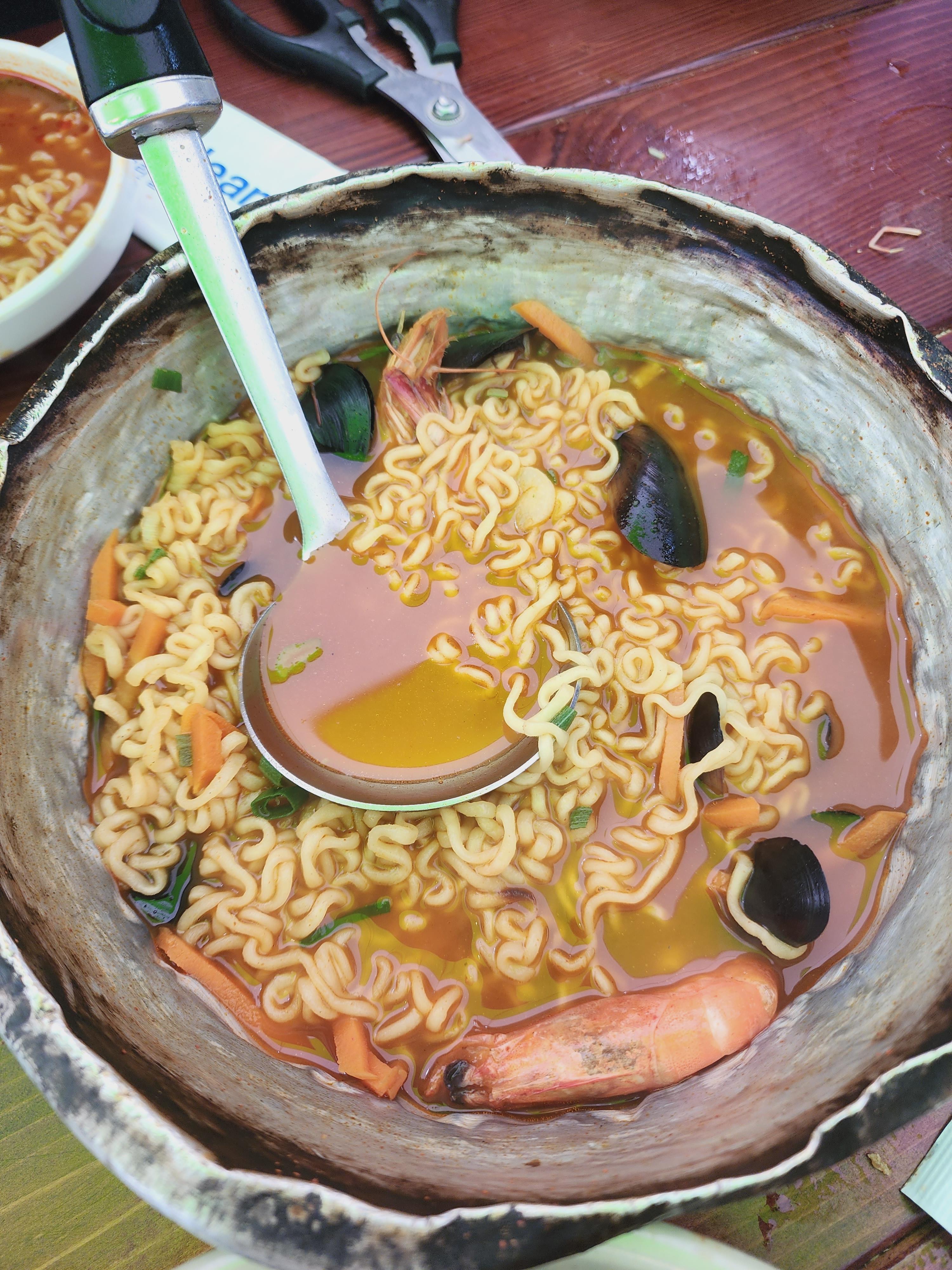 초4, 초2 두 명이서 먹어치운 4인분 라면입니다. ㅎㅎㅎ 국물까지 아주 야무지게.. 몸에 좋은 제철음식 사줘도 라면이 최고인 아이들..... 언젠가는 대하맛을 알겠죠? ㅎ