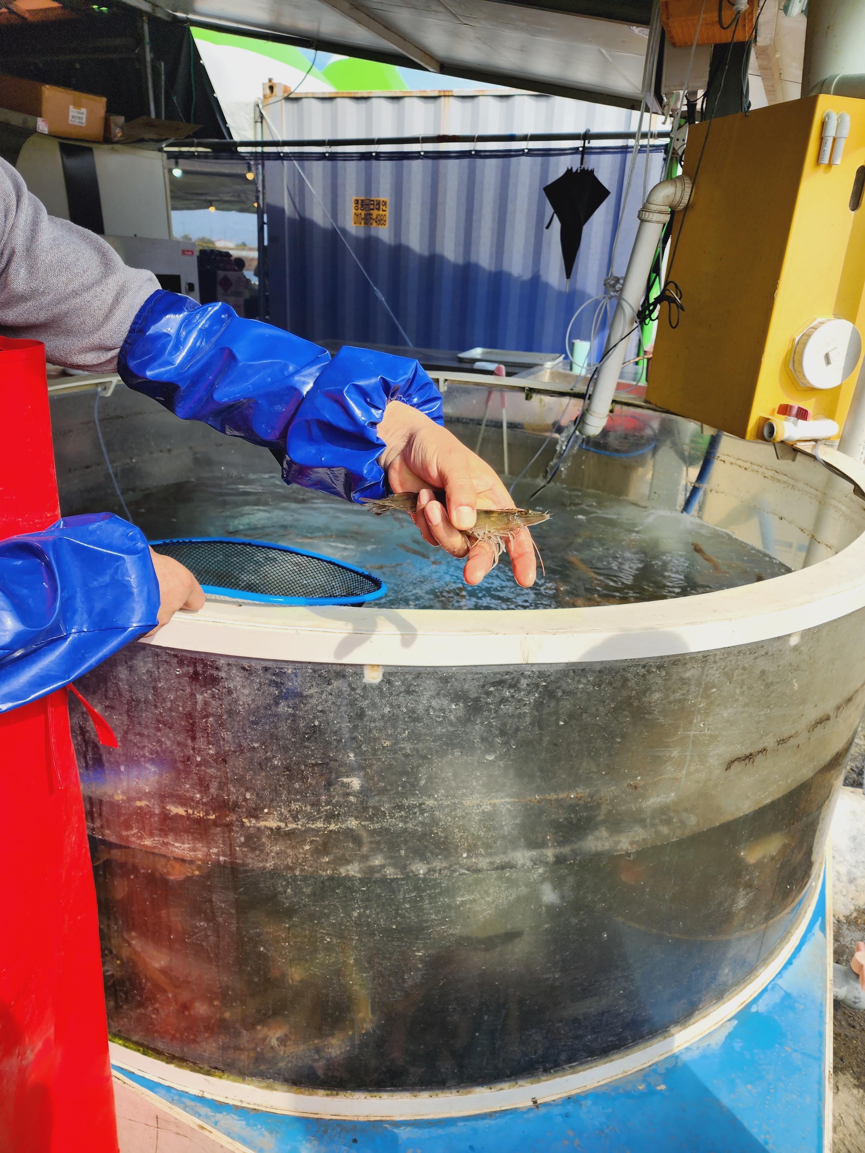 집 가는 길에 대하 수족관도 구경했어요 진짜 많네요.. ㅎ 사장님이 직접 대하 꺼내서 아이들도 보여주셨어요