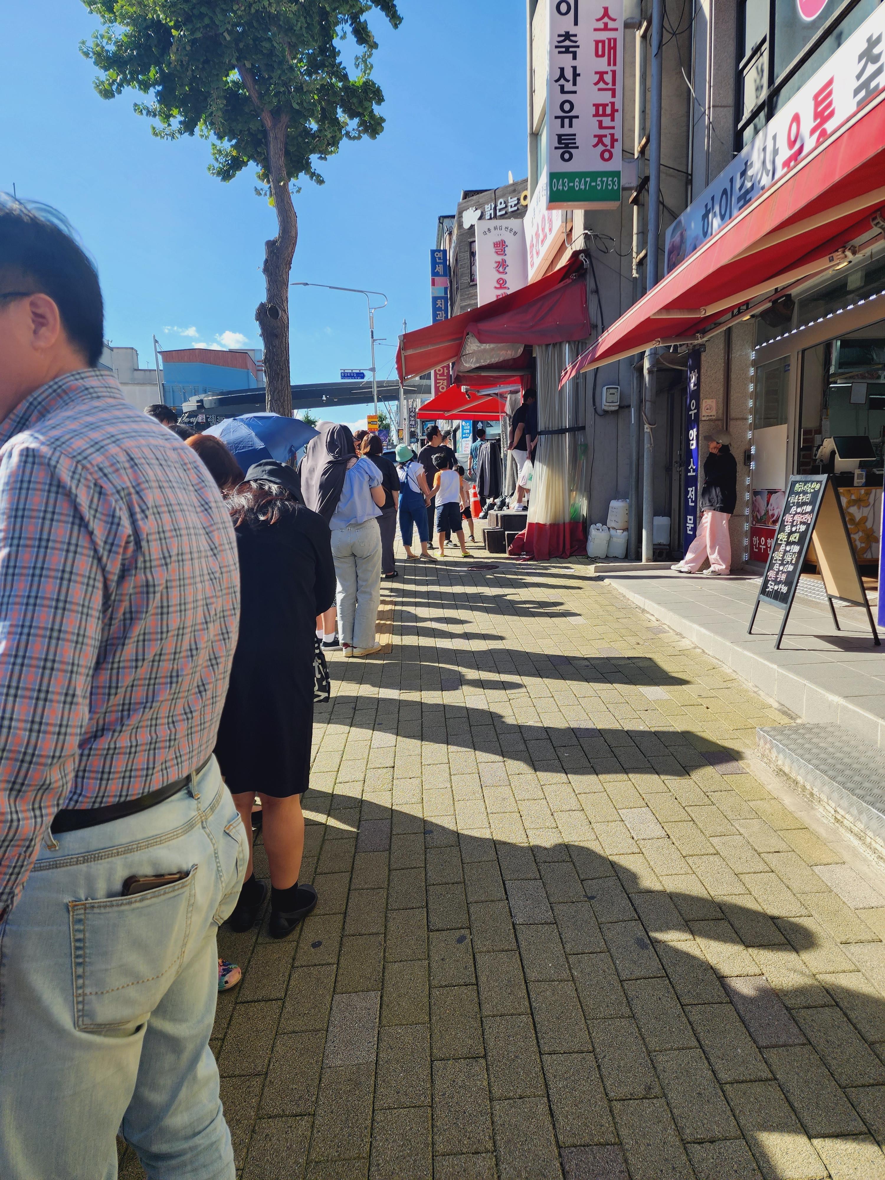 마지막으로 빨강어묵 먹으러 갔어요!. 전날 중앙시장 모든가게가 다 닫아서 빨강오뎅 못 먹었는데 다행히도  빨간 어묵 원조집이라는 곳이 열었더라고요. 다행이다 ㅠ 연휴 내 못 드셨던 분들이 다 몰렸는지 줄 서서 기다렸습니다. 다행히 금방 빠지는 느낌이라 30분? 정도 기다려서 먹었어요. 이날 떡은 없어서 빨강어묵만 먹었고 포장만 가능했던 거 같은데 기다리면서 한 두 꼬치 먹는 건 가능하더라고요