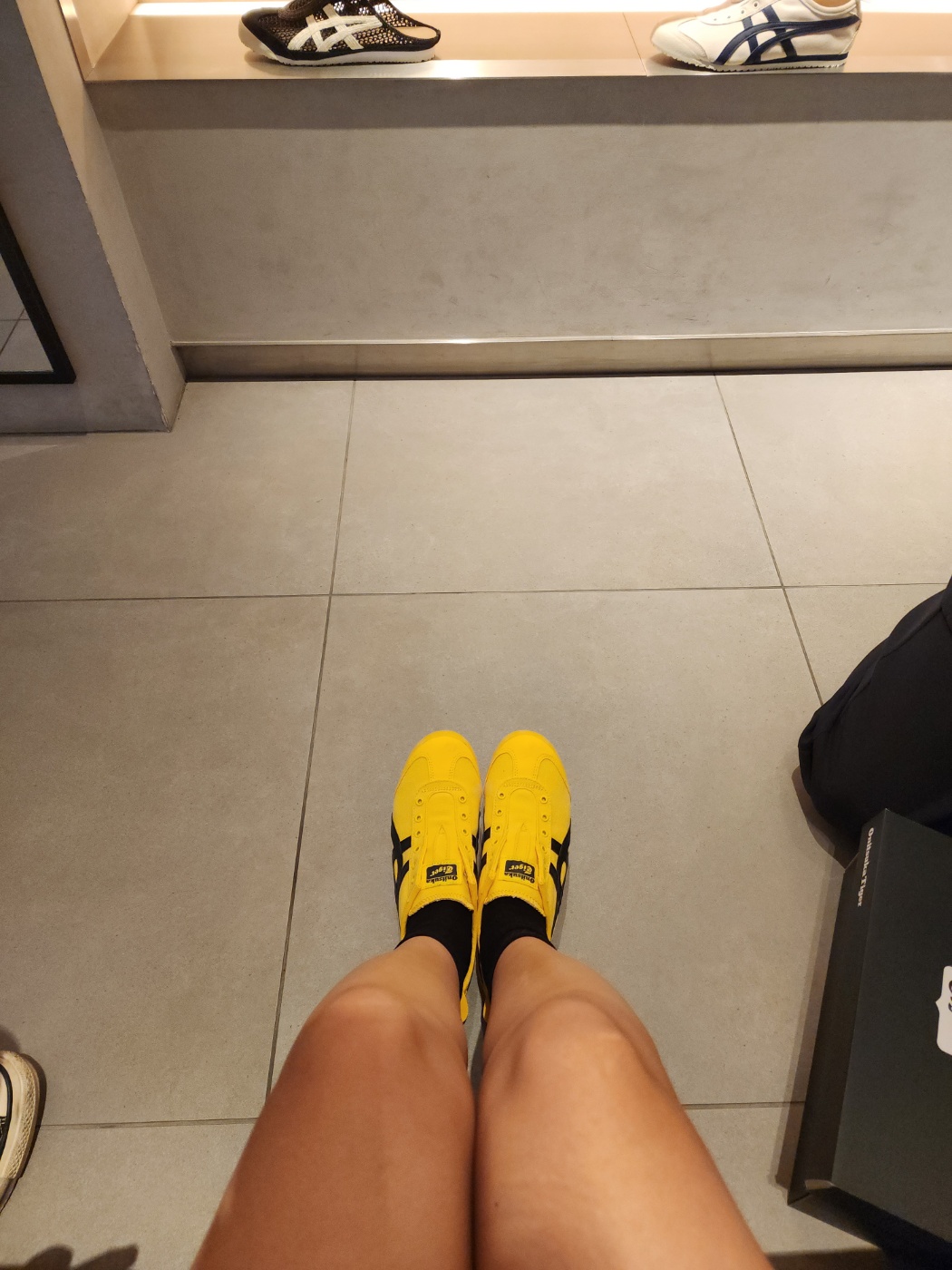 저는 운동화 2개를 구매했는데요, 노랑이는 많이들 보셨죠? 쨍한 색을 좋아해서 가기 전부터 도 있으면 사야겠단 맘은 있었습니다. 실제로 끈이 있는 모델과 제가 구매한 슬립온 타입 2가지로 나오고 저는 슬립온 타입으로 구매했습니다. 신고 벗기가 너무 편하고 가벼워서 일본 여행 내내 정말 잘 신고 다녔습니다. 끈이 없는 게 신의 한 수네요!.