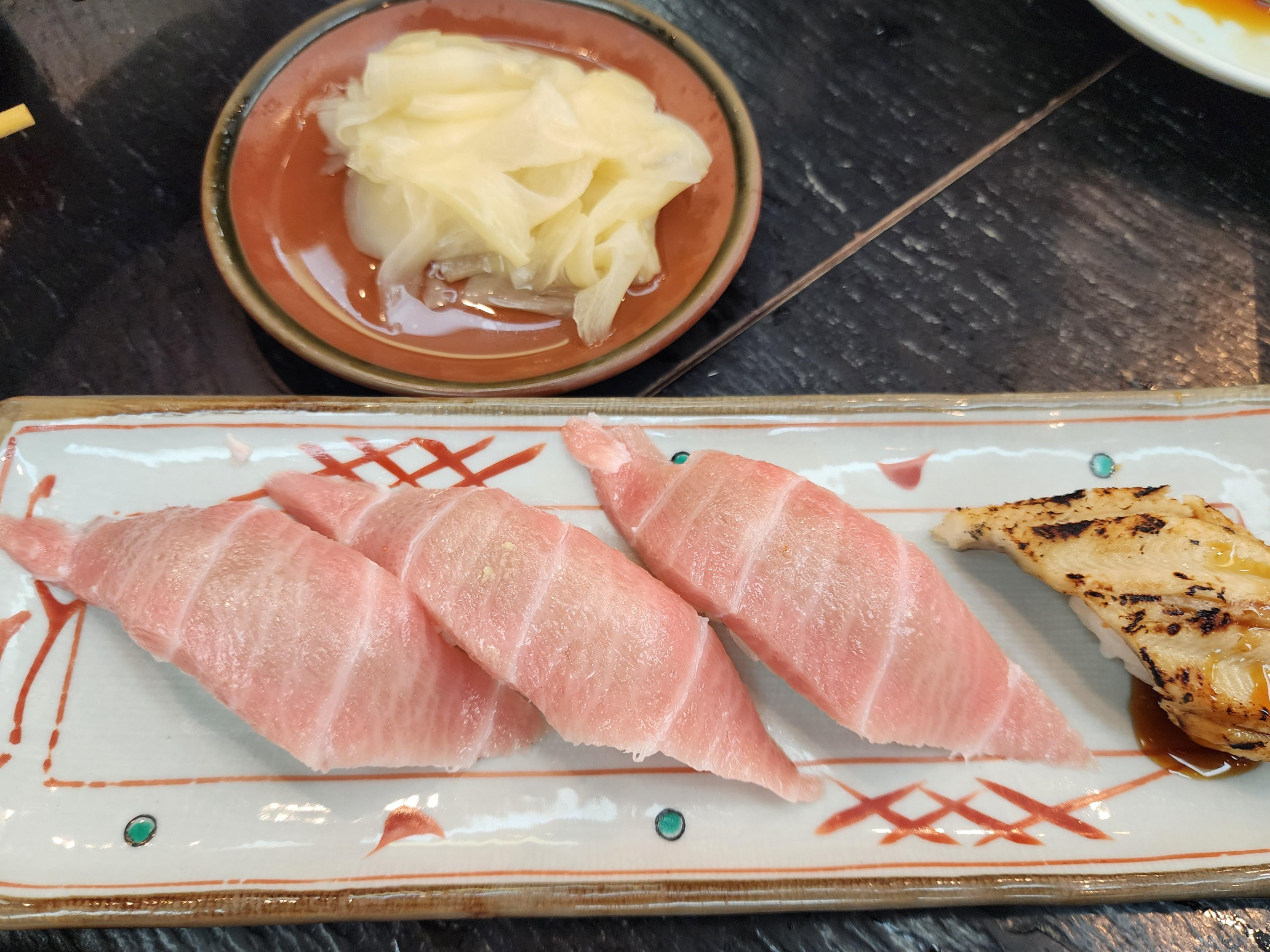 • 오오토로(대뱃살) – 마블링이 살아있는 참치의 진수. 입에서 살살 녹는 식감