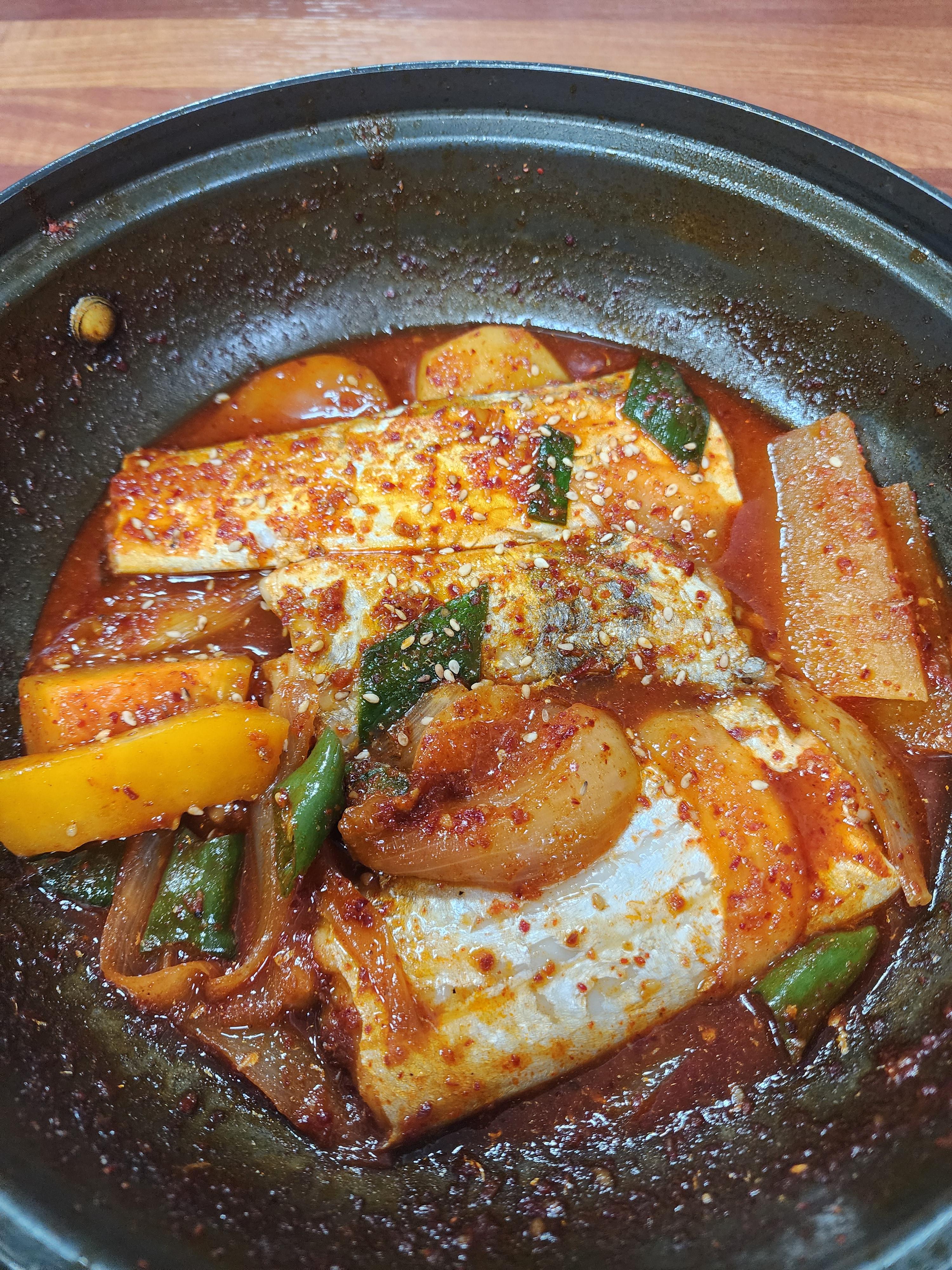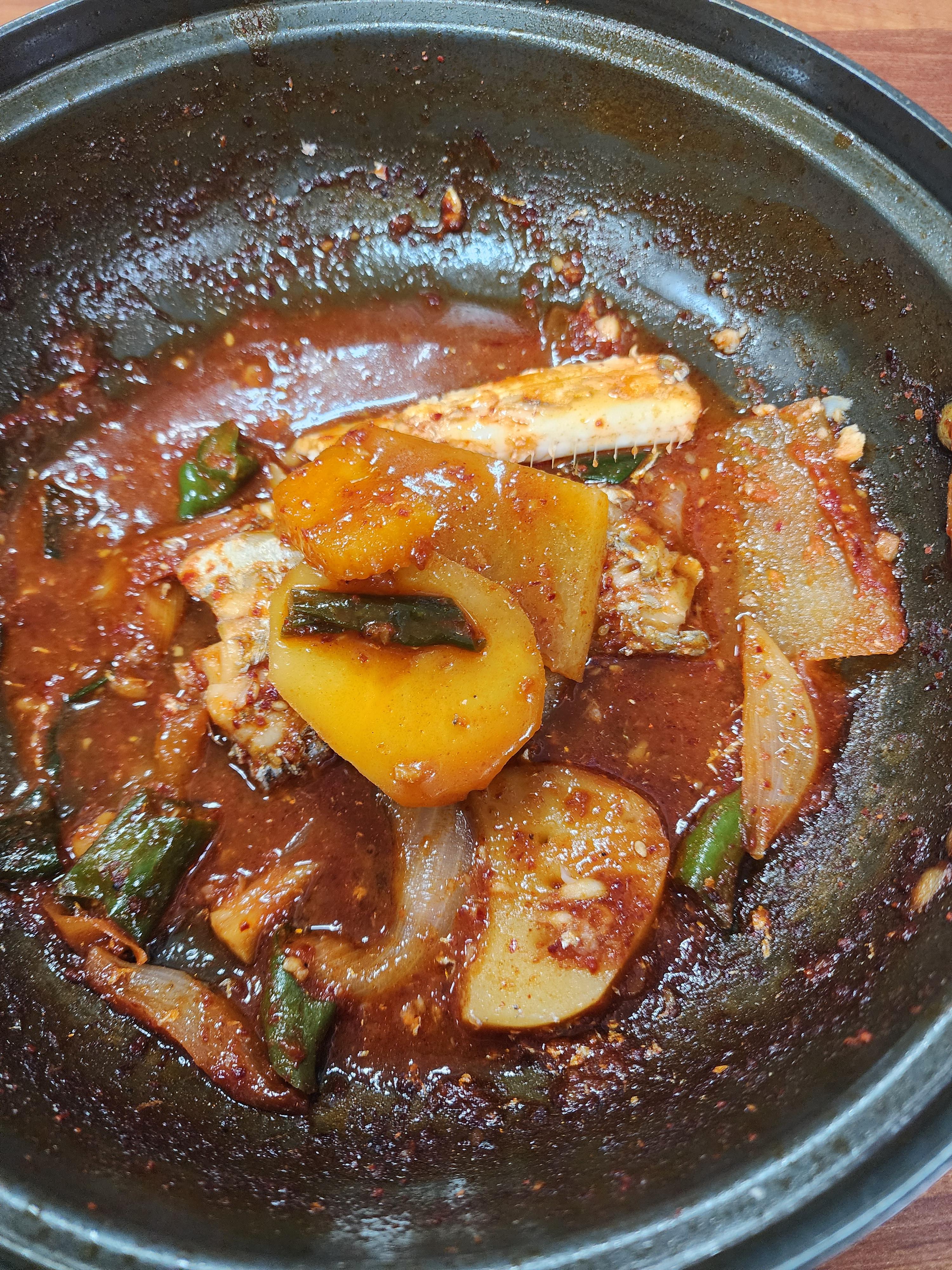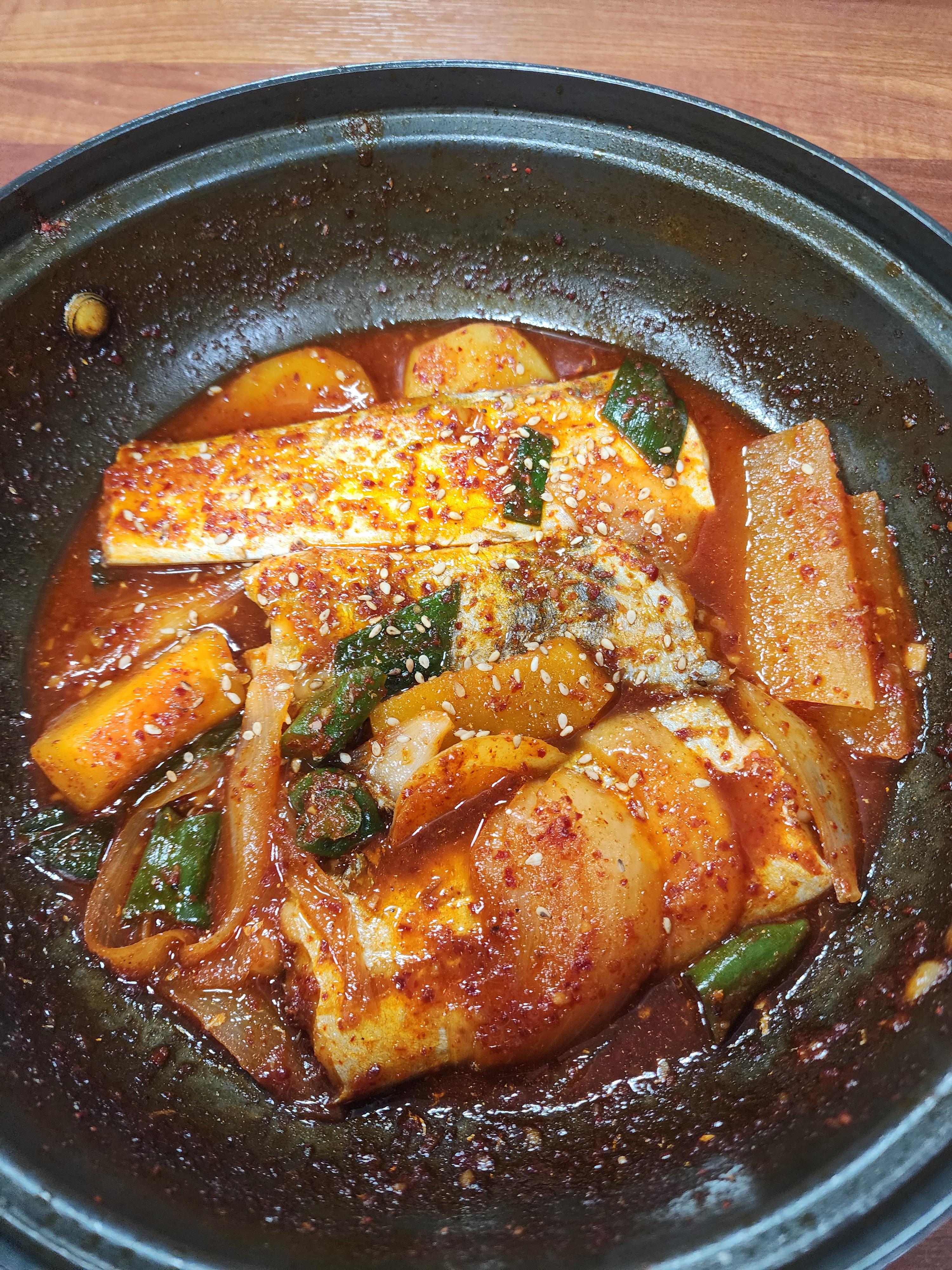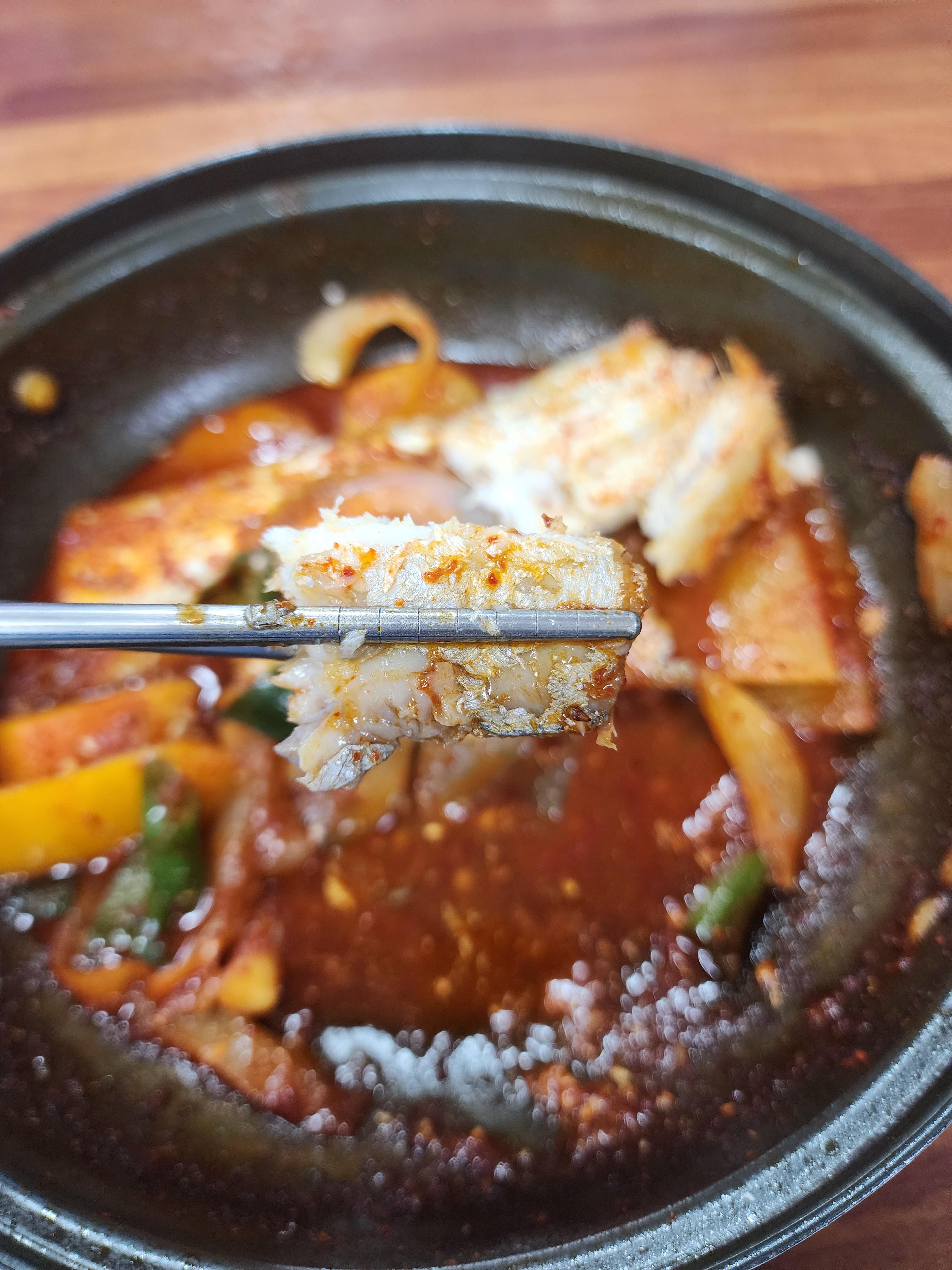 양은 남성분도 여성분도 부족하지 않으실 거예요. 갈치 3토막에, 무 2~3개, 감자 2~3개 정도가 나오는데요. 아쉽지 않은 양이였어요. 밥 한 공기 더 시켜서 먹어도 될 정도로 갈치가 부족하기보단 밥이 부족하실 수 있습니다. ㅎㅎㅎ 양념에 밥도 비벼야 하니까요 ㅎㅎ 비주얼 보시면 아사겠지만 유명 식당 가서 먹는 것처럼 무에 감자에 갈치조림 구색은 다 갖추면서 가격도 합리적이니까 착한 영업소로 지정받을 만하더라고요.