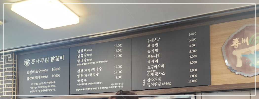 먼저 춘천 하면 닭갈비! 아마 셀 수 없을 만큼 많은 닭갈비집이 있을 텐데요 또 간집에서도 풍자님이 춘천에서 맛있는 닭갈비집을 찾아가는 콘텐츠도 했었더라고요. 저는 이날 춘천에 사는 친구가 추천한 춘천 통나무 닭갈비 본점에 다녀왔습니다.