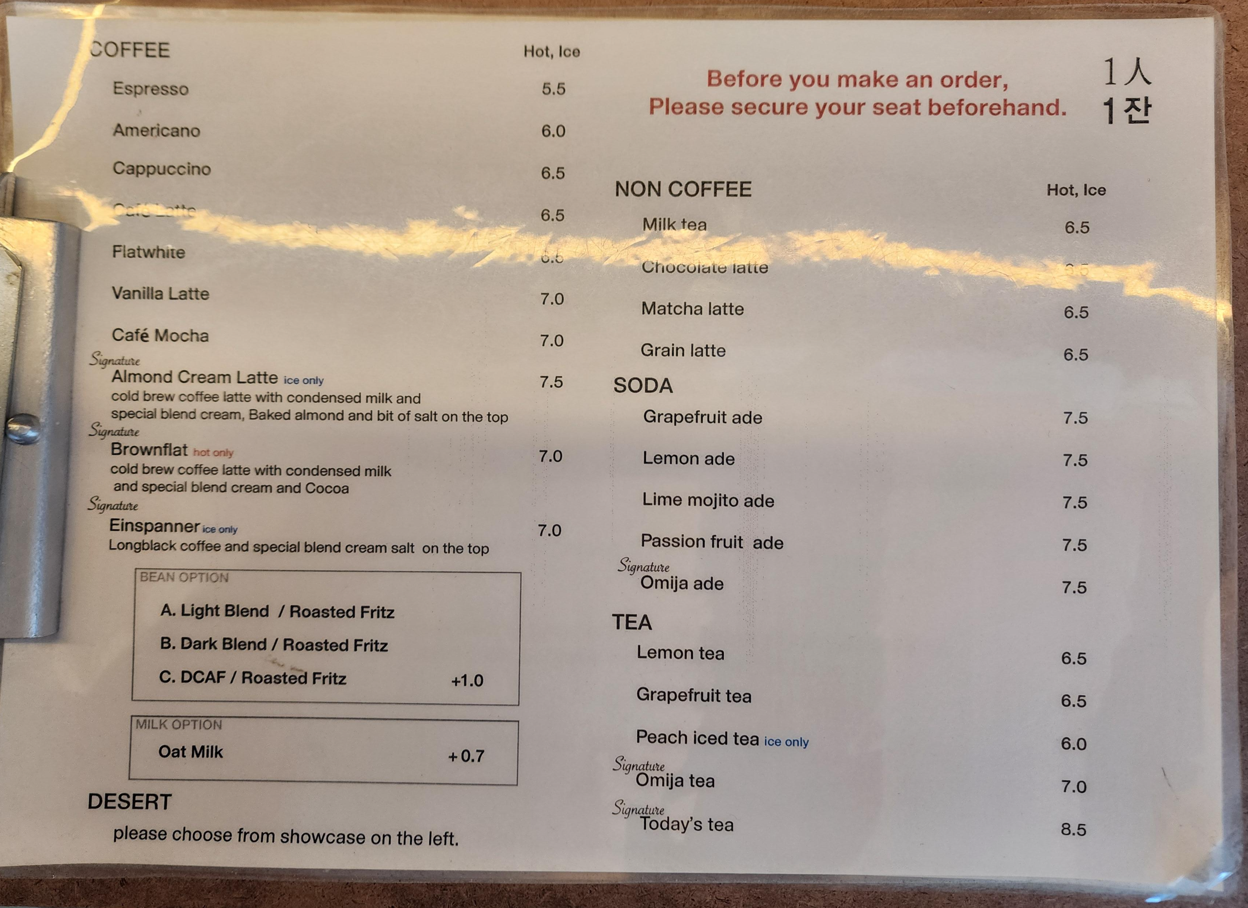층마다 인테리어 디자인이 조금씩 상이해서 어디에 앉을까 고민되실 텐데요. 워낙 유명한 고민하기도 전에 자리가 없어 아무 빈자리에 앉아야 할 수도 있으니 사람들이 몰릴 것 같은 시간은 피하시는 게 좋을 것 같습니다. 4층이었나? 한삼차림처럼 식사+음료 메뉴를 따로 먹을 수 있는 층은 이미 줄이 너무 길어 들어갈 수가 없었는데요. 평상 느낌의 각 공간에 커튼도 드리워져 있는데  앉아 식사를 즐기는 분들이 너무 부럽더라고요. 가장 인테리어가 이뻤거든요...  오픈런을 해야 자리 확보가 가능할 것 같더라고요 아니면 대기줄이 꽤나 길어 30 ~1시간 대기는 기본인 거 같습니다.