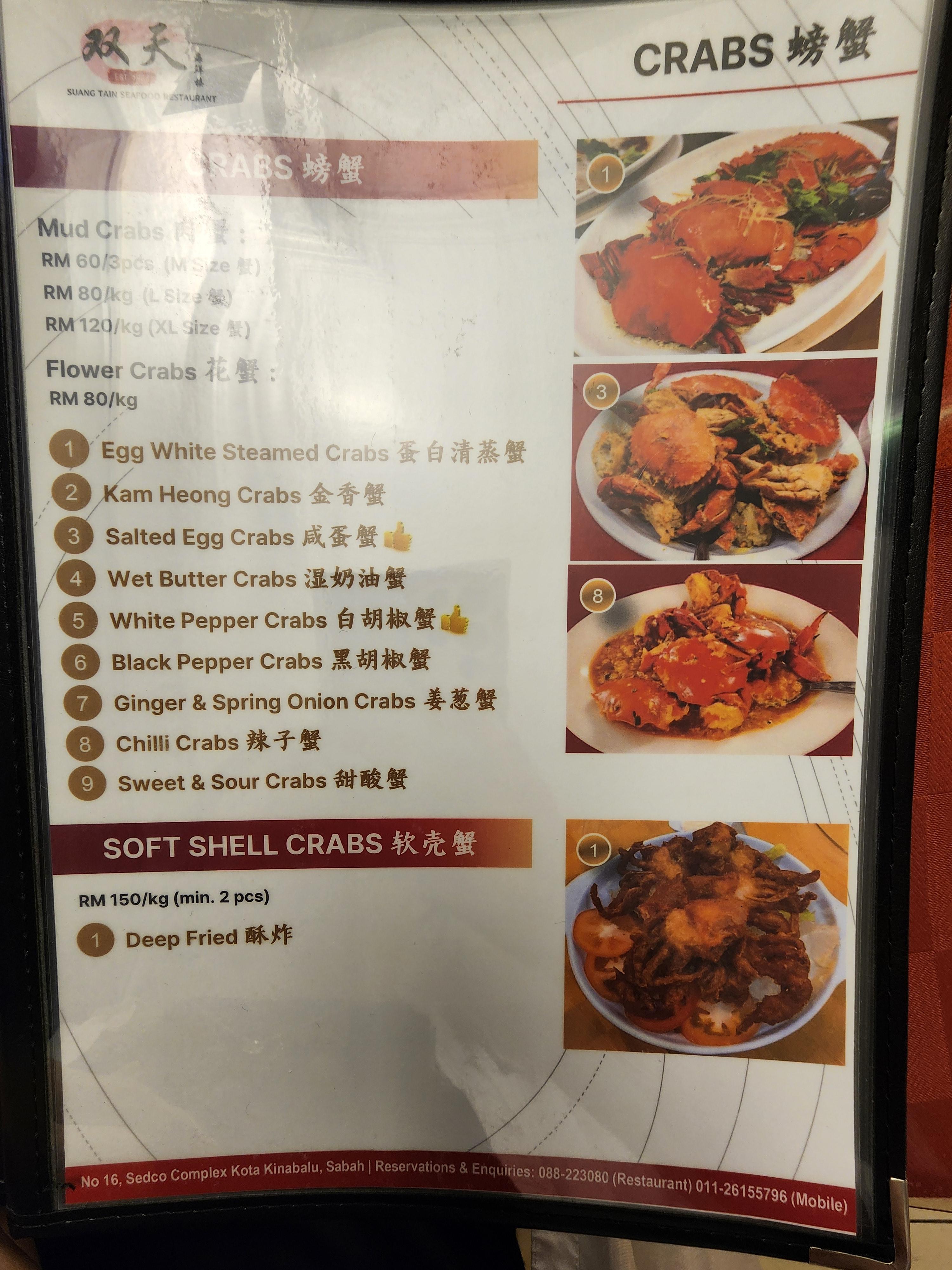 메뉴 및 가격은 아래 이미지를 참고해 주세요 가격대는 한국에 비하면 정말 저렴합니다. 저는 해산물킬러여서 두 명이 갔는데도 불구하고 메뉴는 5개를 시켰어요 ^ ^ 주문 시 참고사항으로는 새우는 G단위로 주문을 넣으실 수 있습니다. 생새우 회의 경우 최소 500G부터 시작하고 크랩의 경우 마리 수에 따라서 S, M, L 나눠져요. 인원수에 맞춰 적당히 시키면 될 것 같은데 저의 경우 새우는 2명이서 500G 시켰고 크랩은 3마리 나오는 거 시켰습니다.