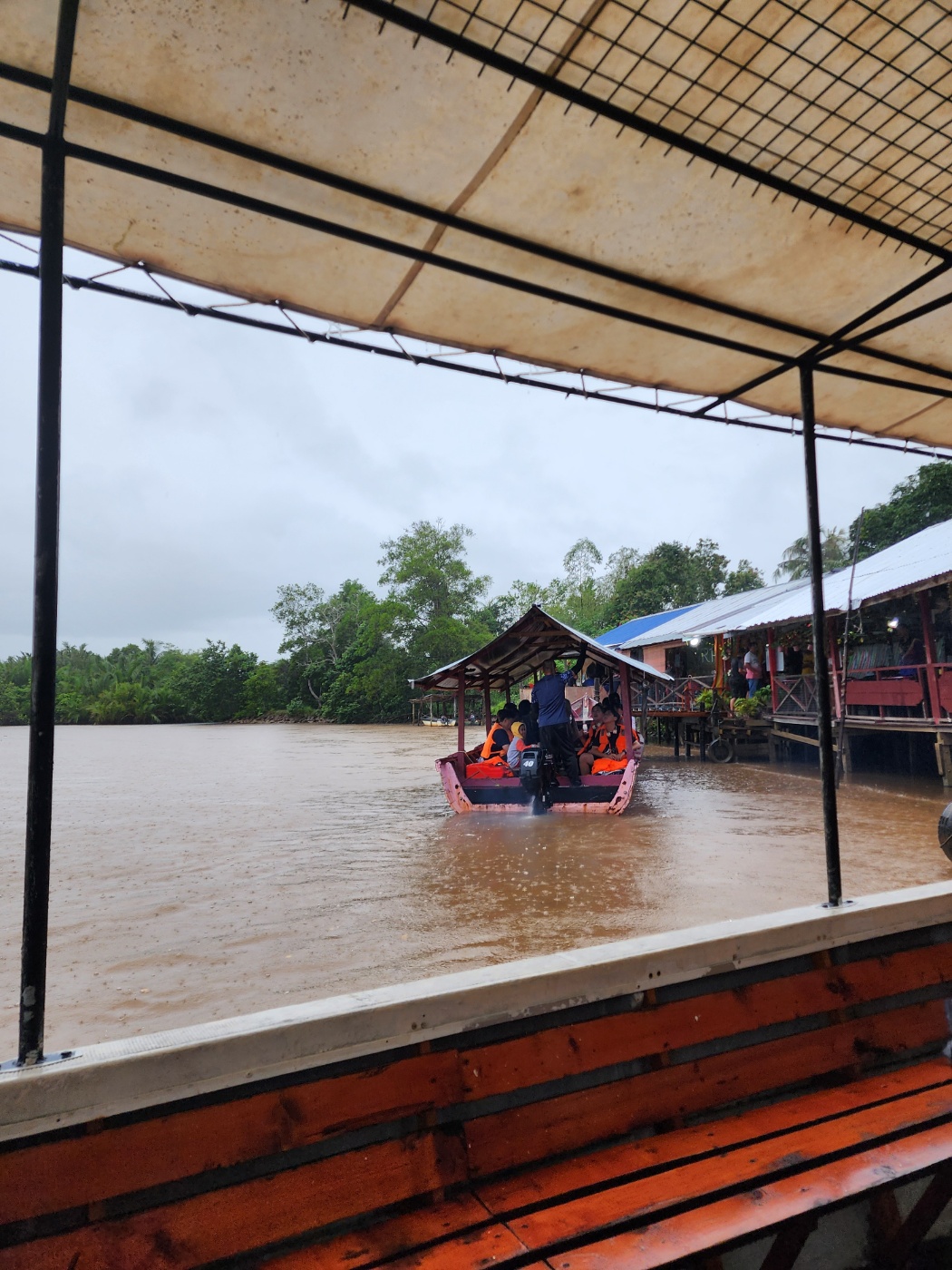 우선 원숭이 먹이 주기부터 시작합니다. 비가 와서 원래도 흙탕물인데 더 뒤집어졌습니다. 정글배 타고 이동