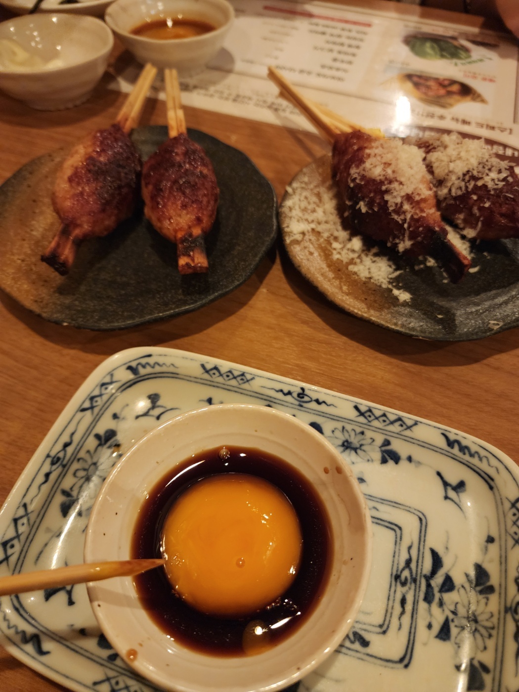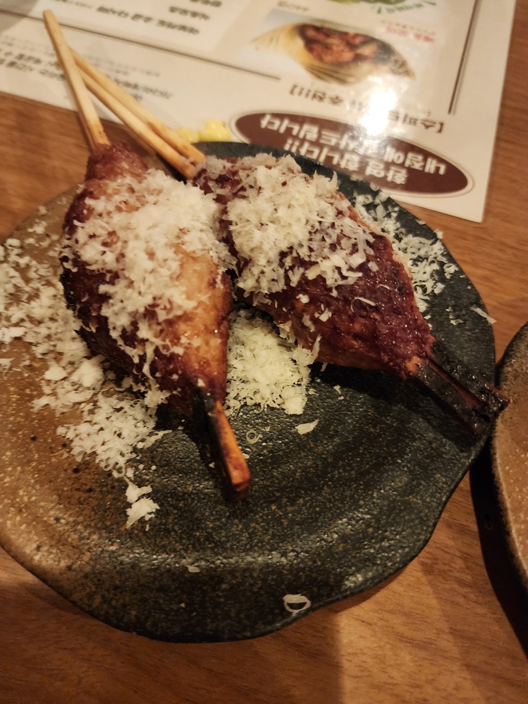 이것저것 다양하게 시켜봤어요. 닭이랑 파 같이 있는 꼬치 / 떡갈비느낌의 꼬치 치즈가루 있는 버전 없는 버전 / 한국식 빨간 국물의 라멘 (이건 좀 달았어요) / 치킨난바 등등 일본은 QR코드로 주문하는 곳 많잖아요 여기도 QR코드로 주문을 받아가지고 너무너무 편하더라고요. 직원 부를 일이 없으므니다 ㅎㅎ.. 그리고 여기 가격대는 좀 있는 편이라 밥은 먹고 간단하게 술 한잔 하러 가면 좋을 것 같습니다.